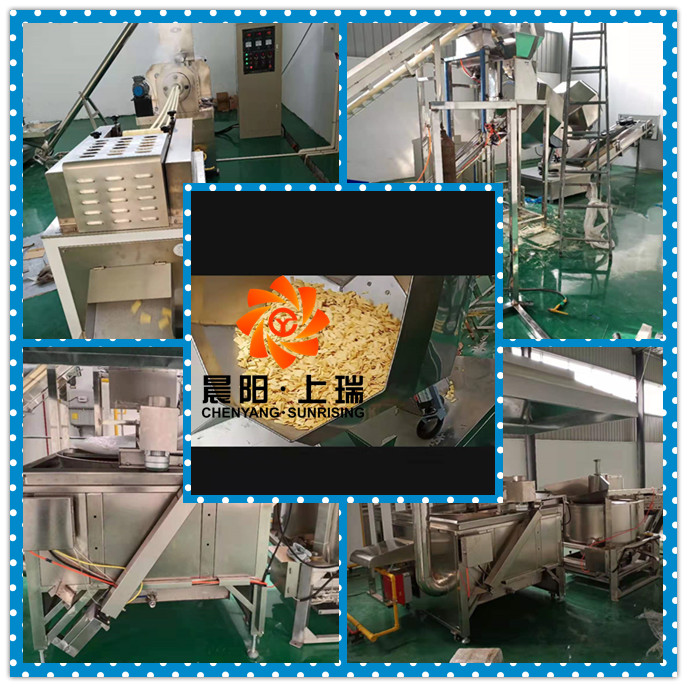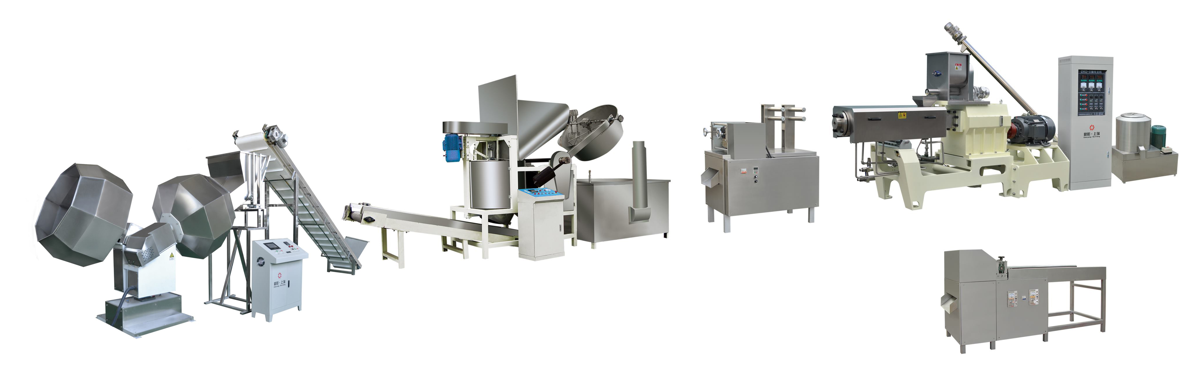 拌粉機(jī)-膨化機(jī)-切斷機(jī)-提升機(jī)-油炸機(jī)-自動(dòng)調(diào)味線(xiàn)-冷卻線(xiàn)-包裝機(jī)