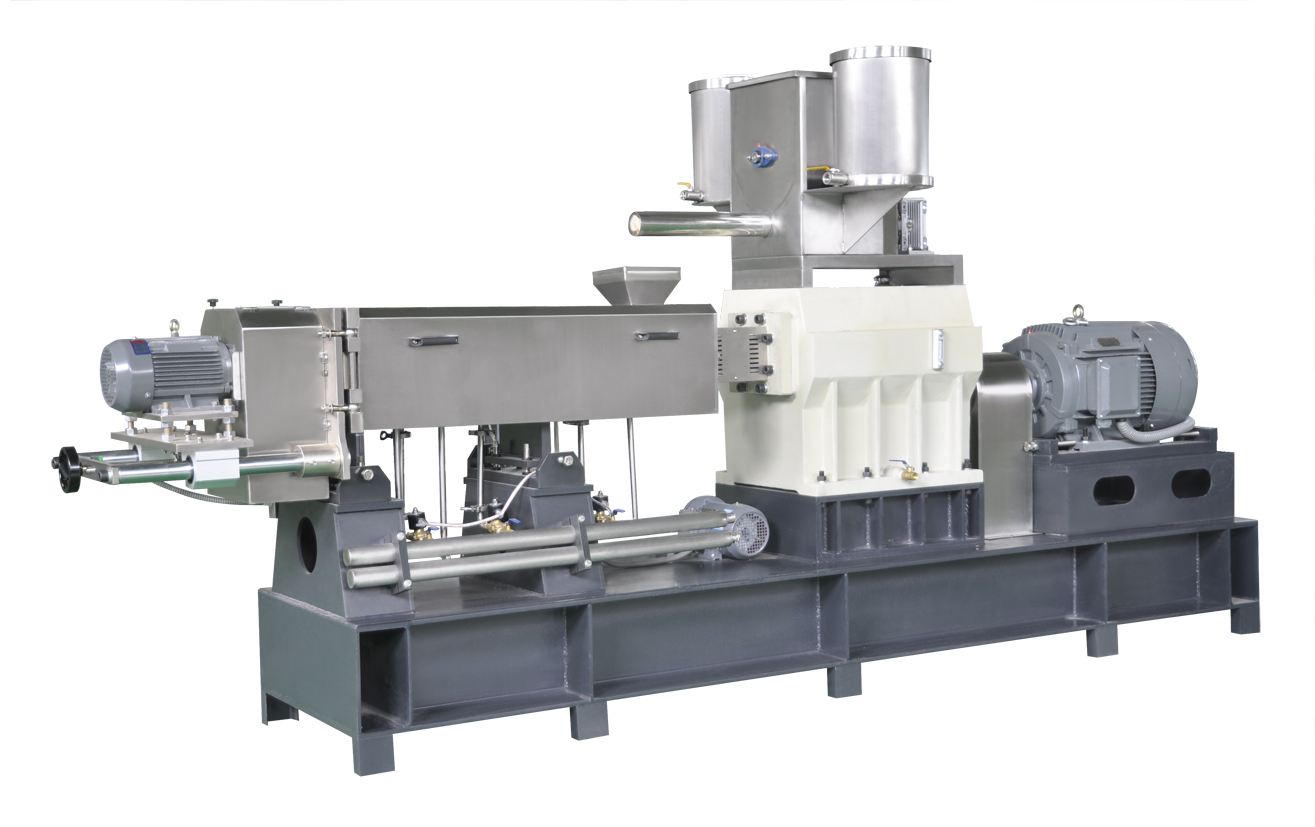 2、雙螺桿膨化機(jī):混合的原料在高溫高壓環(huán)境及雙螺桿的擠壓情況下,原材料中的淀粉結(jié)構(gòu)發(fā)生變化,變成容易吸收的營(yíng)養(yǎng)成分,通過(guò)模具擠出。雙螺桿膨化機(jī)采用先進(jìn)的變頻調(diào)速技術(shù),更節(jié)能,速度控制更精確,電機(jī)運(yùn)行中電流、轉(zhuǎn)速都可以通過(guò)變頻器面板直接觀看,確保設(shè)備安全。