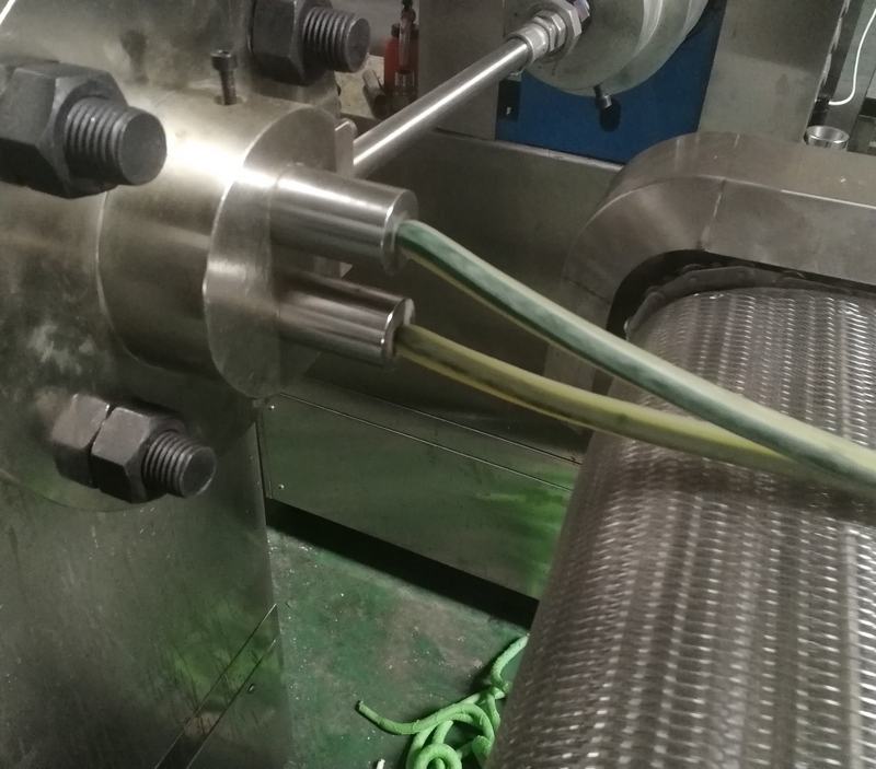 拌粉機→螺旋上料機→單螺擠出機→8米冷卻機→伺服切斷機