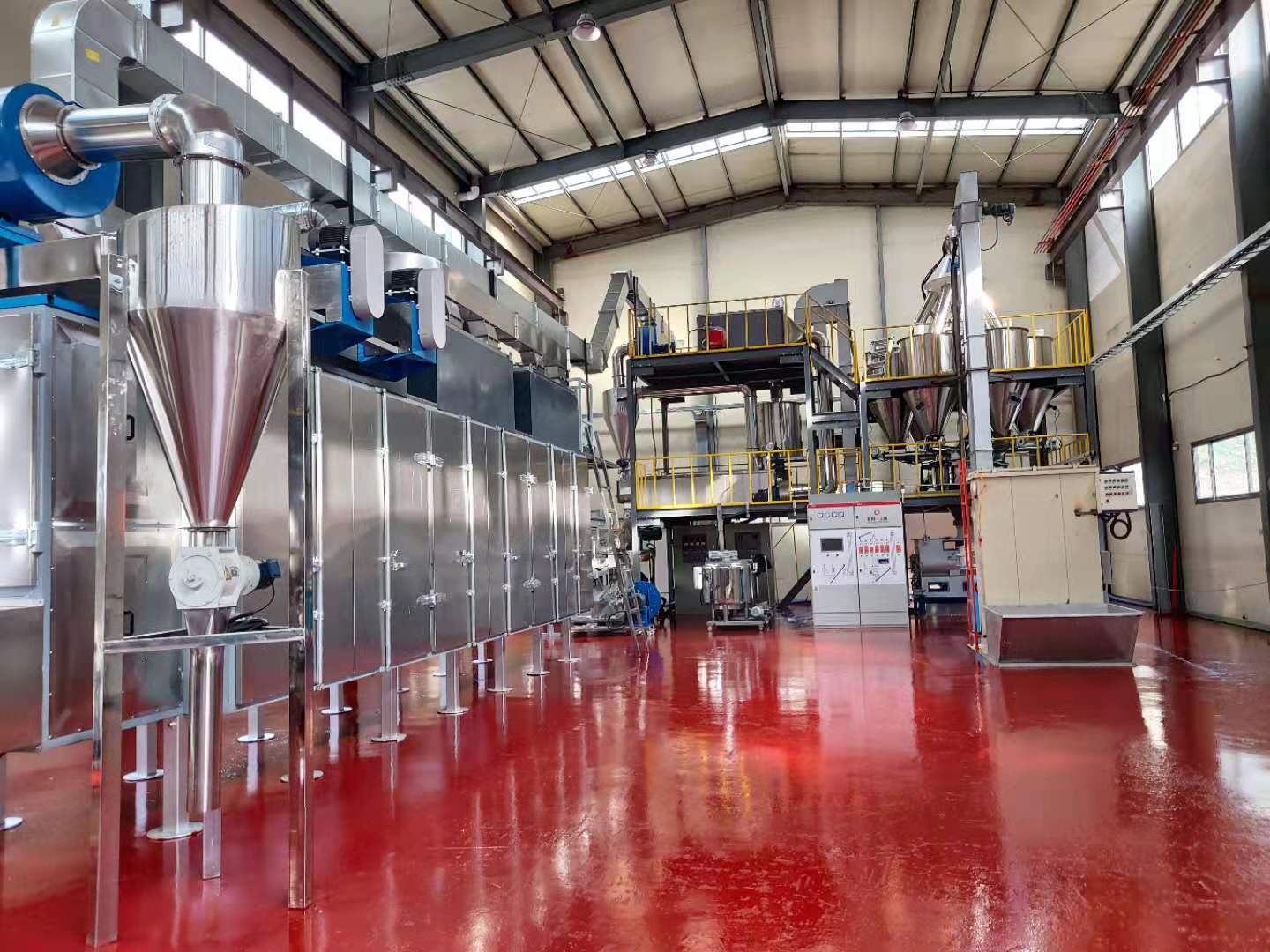 技術方面寵物食品生產線設計自動配料混合粉碎系統、雙螺桿擠壓膨化機、環流帶式干燥機,真空噴涂機,運行設有自動控制中心。整套設備全部自動運行。降低勞工成本投入,低成本,高產能。
