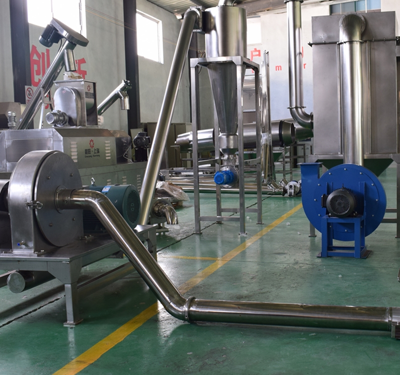 本粉碎機主要粉碎膨化以后的顆粒物料,錘擊式粉碎機在粉碎膨化后的物料具有產(chǎn)能更大,噪音低,產(chǎn)熱小等特點。