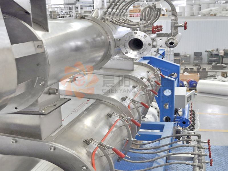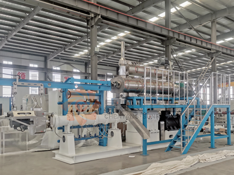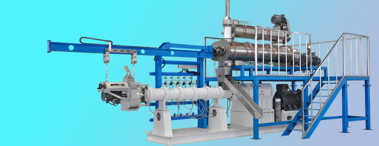 雙螺桿膨化機由供料系統(tǒng)、擠壓系統(tǒng)、旋切系統(tǒng)、加熱系統(tǒng)、冷卻系統(tǒng)、傳動系統(tǒng)、控制系統(tǒng)組成。該機適用原料廣泛、生產產品多樣,變頻調速、自動化程度高、運行平穩(wěn)、使用壽命長。